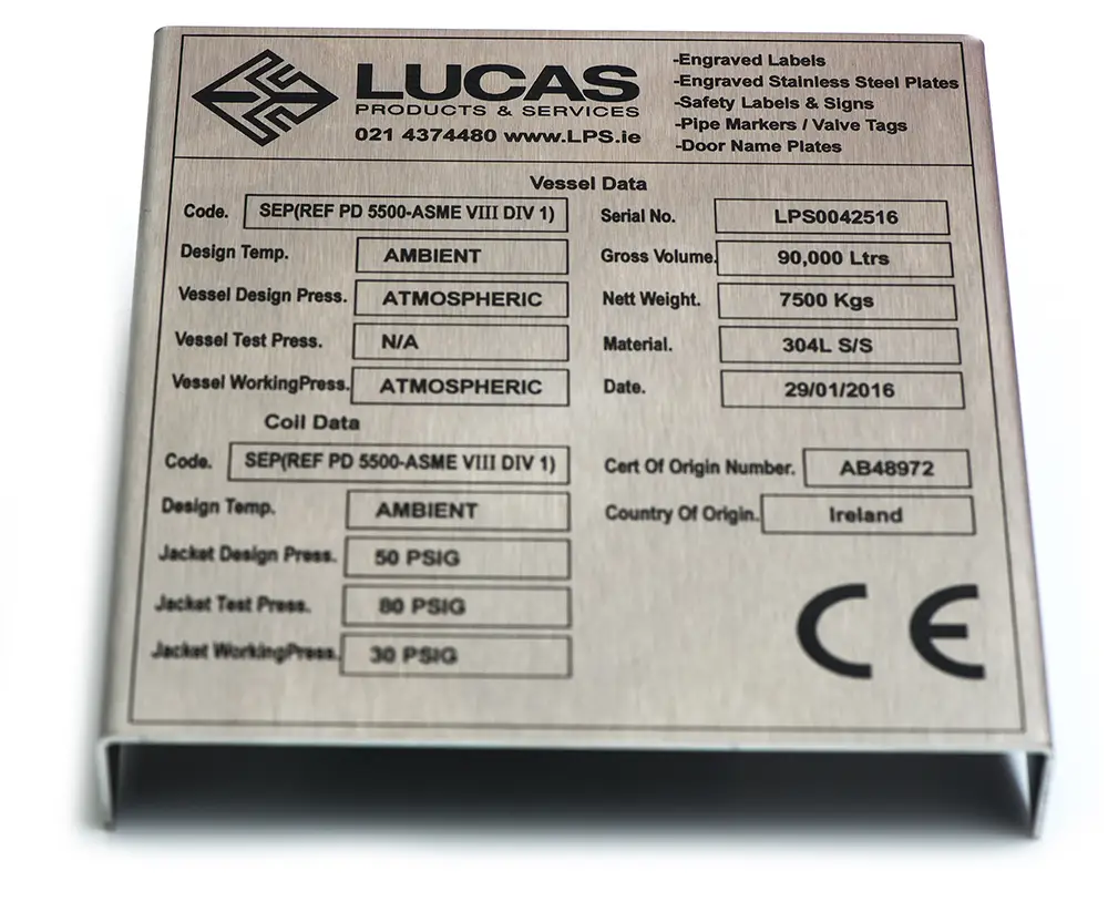 We manufacture high-quality rating plates and machine identification plates in stainless steel, aluminium, and industrial laminates. Supplied with engraved or printed data, CE markings, serial numbers, and technical information, they ensure compliance and traceability across your assets.